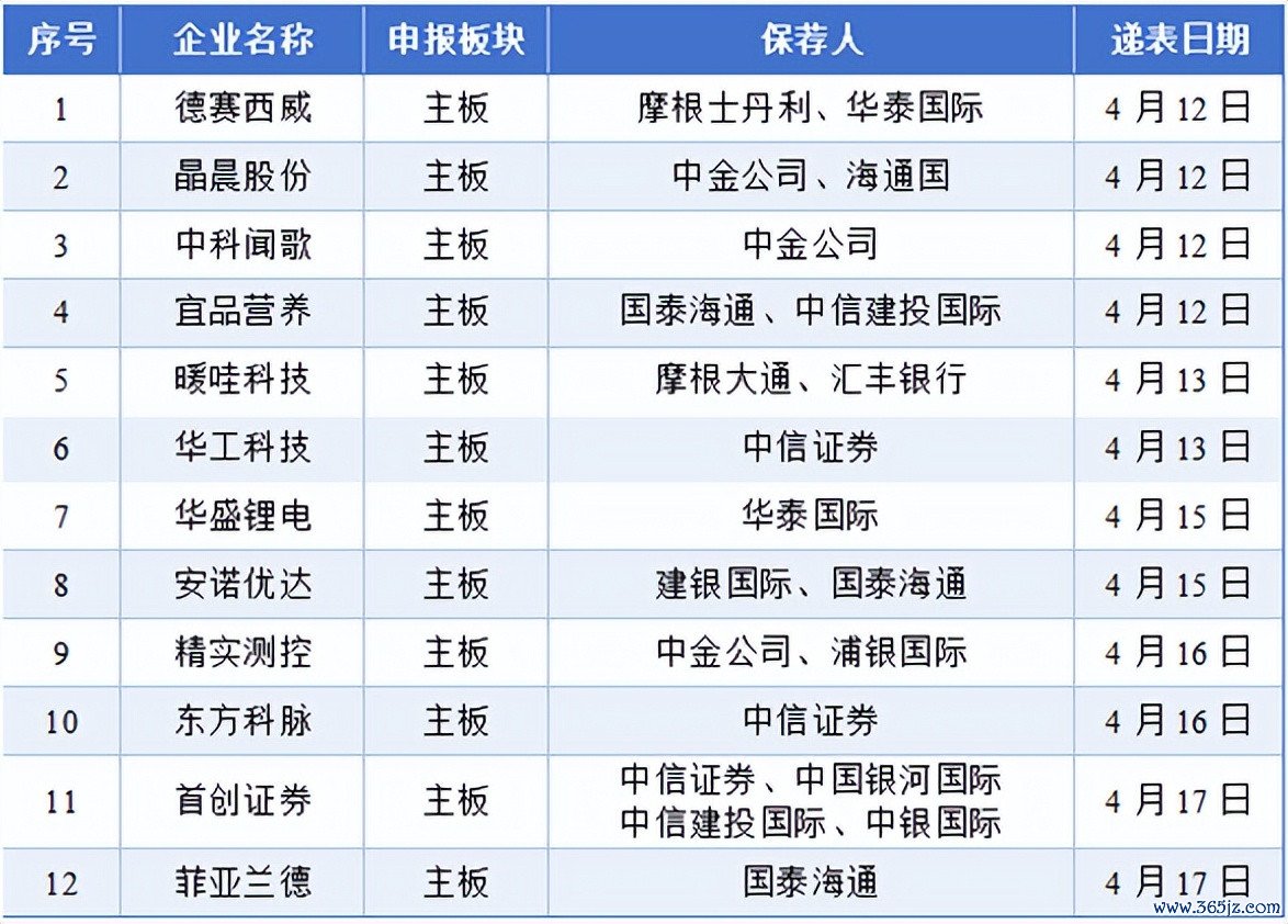 1)、4月12日,德赛西威首次向港交所递交招股书,拟在香港主板上市,联席保荐人为摩根士丹利、华泰国际。(A+H)